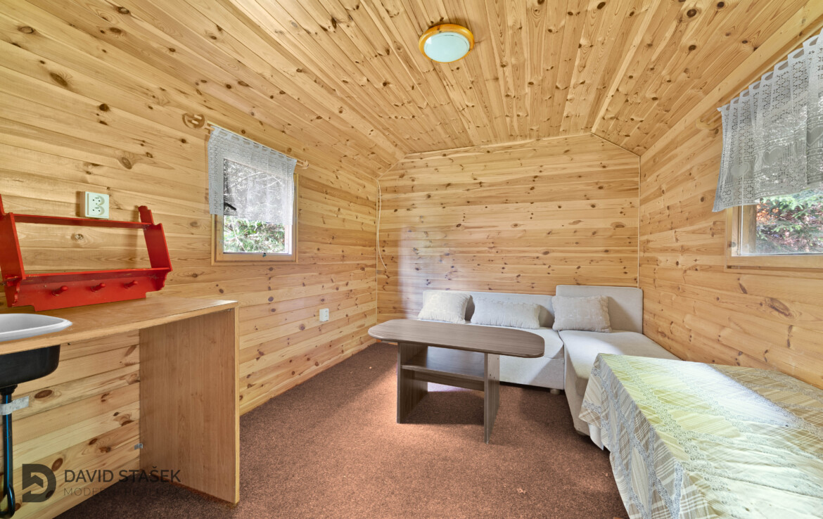 Chata se nachází na klidném místě u lesa, na okraji chatové oblasti, kde si užijete naprostý klid a soukromí, a přitom jste jen pár minut od města.
